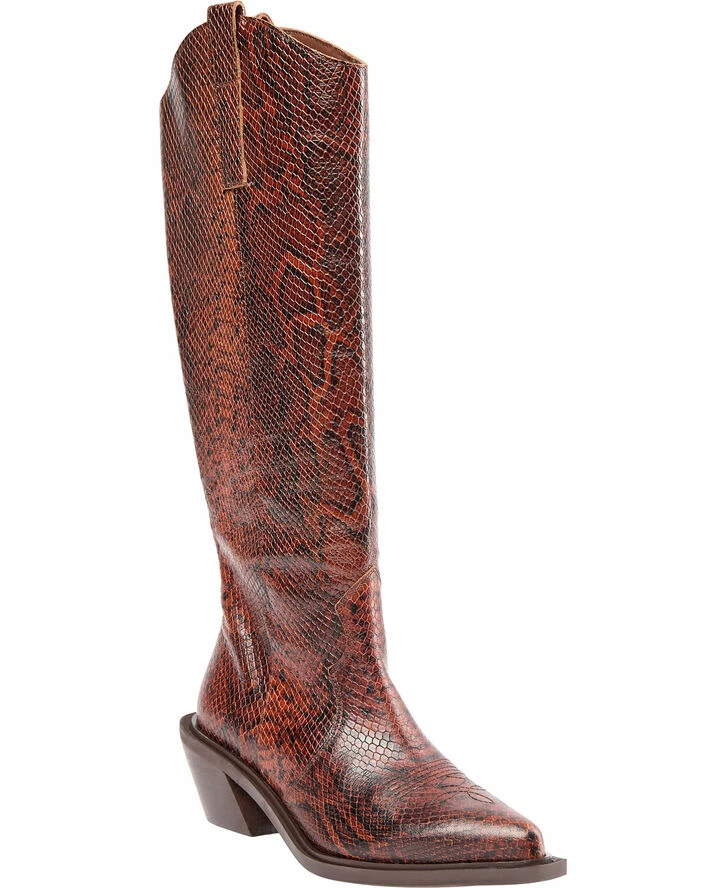 Knee-high leather cowboy boots featuring a rubber outsole for grip. Slide this on and wear with dresses all season long.