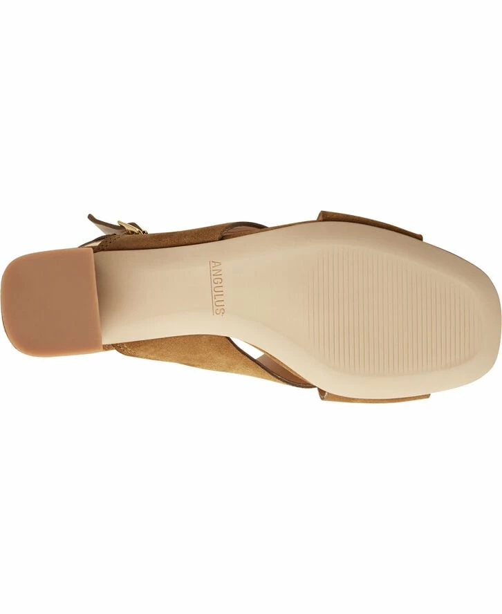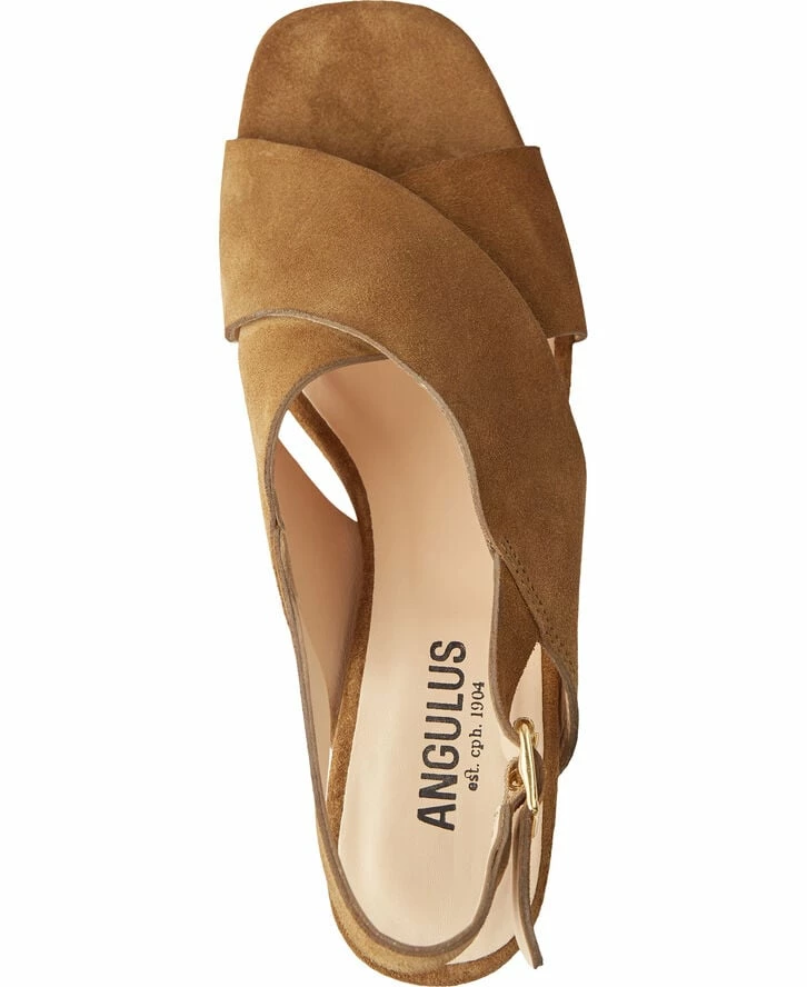 Sandal med blok hæl. Kan styles op og ned efter behov. Produceret i 100 % skind i tråd med ANGULUS’ dna. Produceret i Portugal. Hælhøjde på ca. 6 cm.