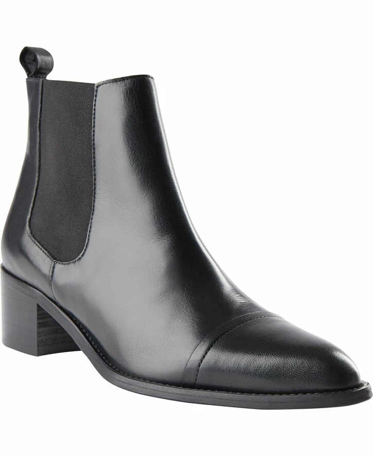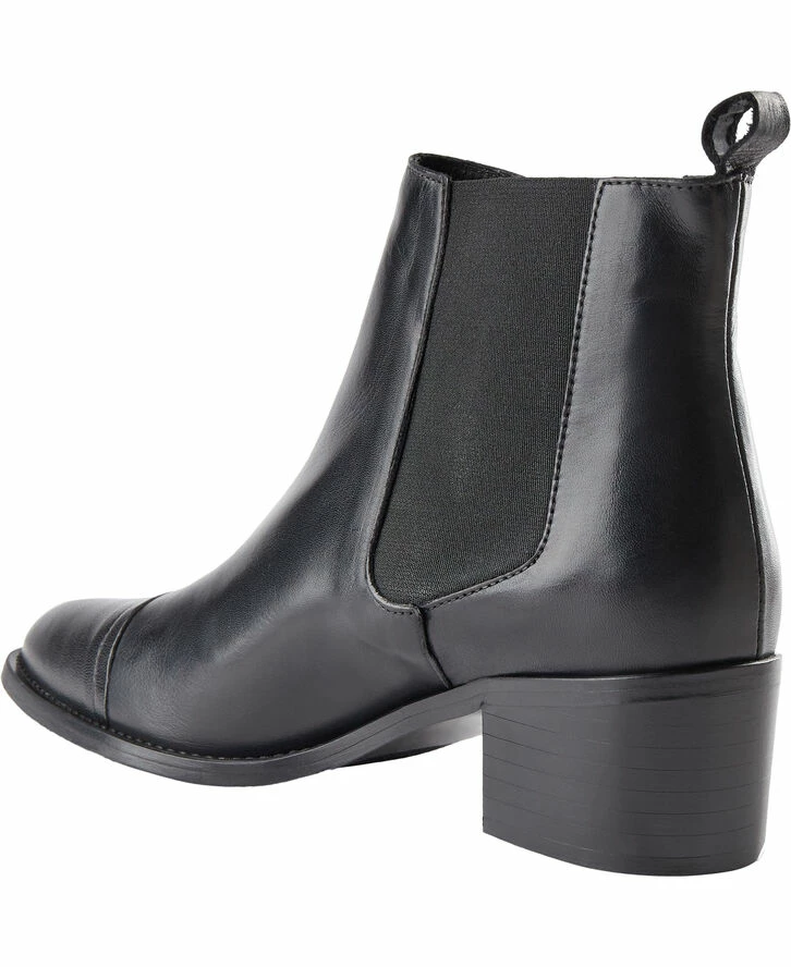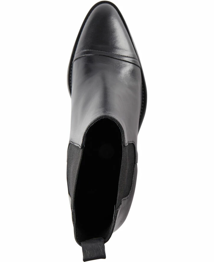 Støvle fra Bianco i en lækker, blød skindkvalitet. Støvlen er en klassisk ankelstøvle med elastikpaneler på inder- og yderside, en spids snude samt en grov hæl på 5cm.