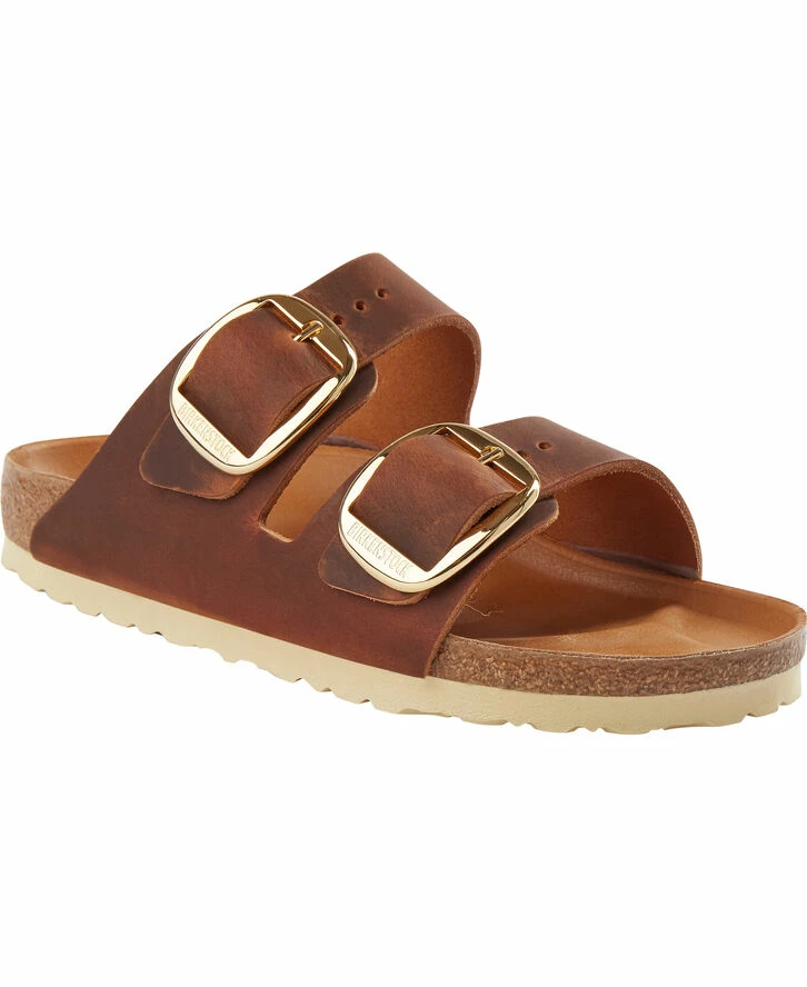 BIRKENSTOCK Arizona er en ægte klassiker, der har begejstret mænd og kvinder gennem årtier med sit tidløse design. Varianten Big Buckle kommer her med et stort elegant dornspænde – et fantastisk, markant blikfang på en ellers enkel sandal. Half-exquisite-fodsengens dæksål er betrukket med blød, glat læder og farvemæssigt afstemt efter skoen. Overmaterialet består af særlig tyk, olieret nubuklæder, der er bearbejdet med åbne kanter.