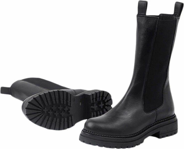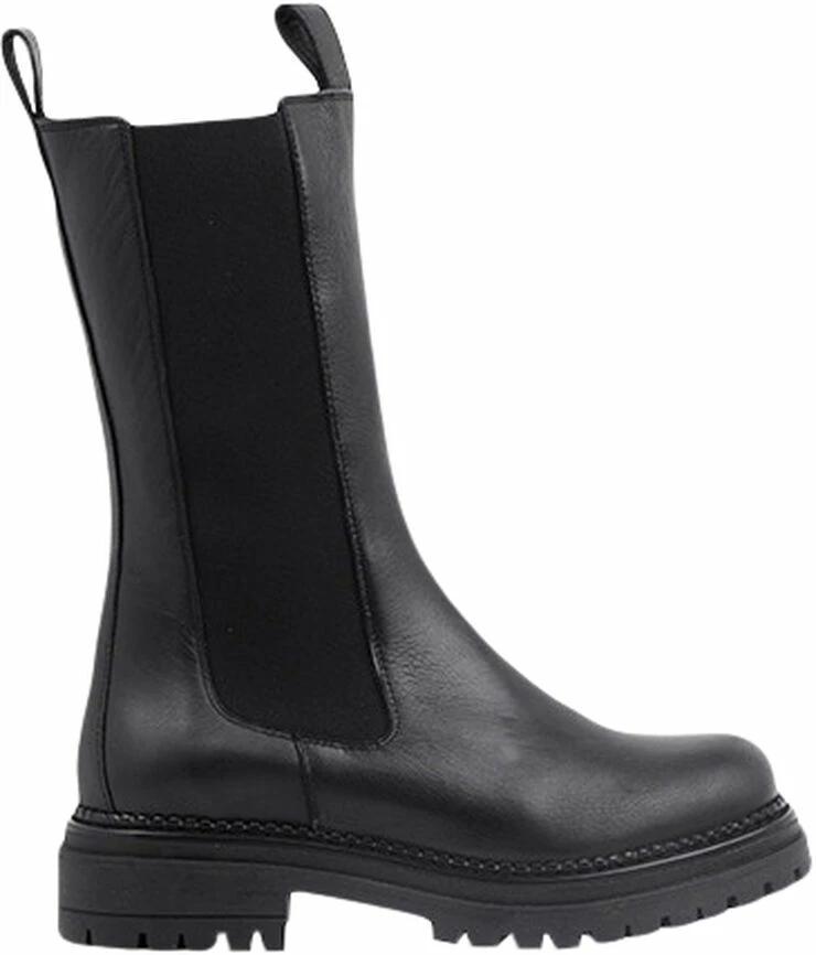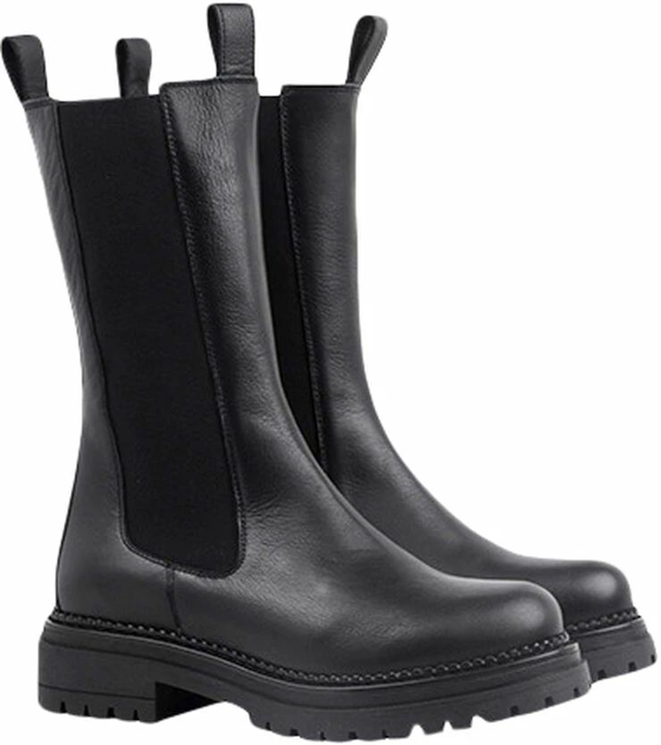 Støvle fra Cashott i en lækker læderkvalitet. Støvlen er enkel i modellen med elastik i siderne, en lille hælstrop, en rund snude samt en militærsål på 4 cm, der giver støvlen et super cool og chunky udtryk.
