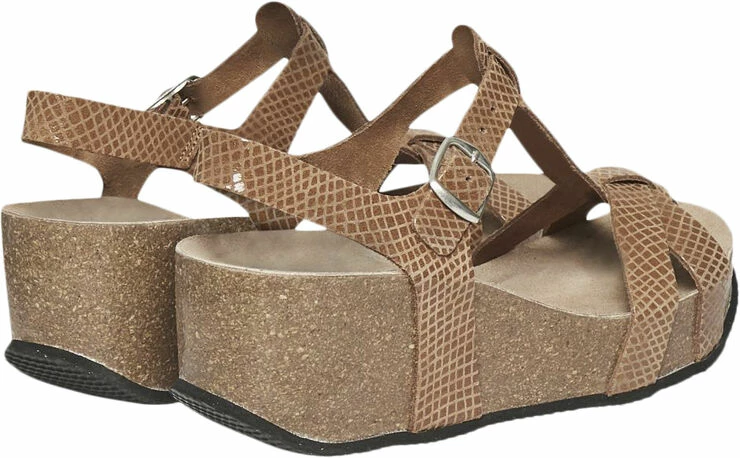Virkelig lækker og trendy sandal fra Cream. Sandalen har dette flotteudtryk, en korkbund, er 5,5 cm høje og har plateausål, så de ikke virker høje at have på. Det er uden tvivl en dejlig komfortabel og stylishsandal, der kan bruges til både hverdag