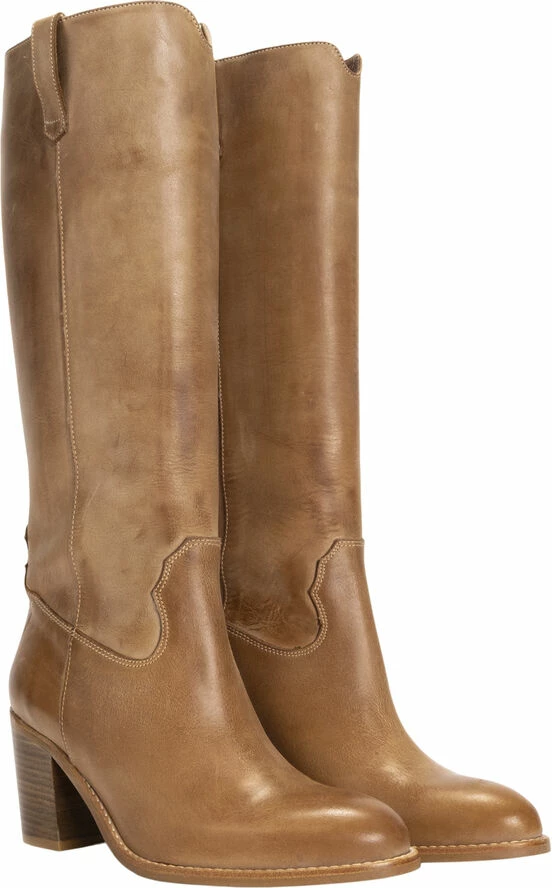 Støvler fra Dico Copenhagen i en lækker læderkvalitet. Støvlen er enkel i modellen med en let spids snude, et langt skaft med fine syningsdetaljer samt en bred hæl på 7cm, hvilket giver støvlen et feminint udtryk.
