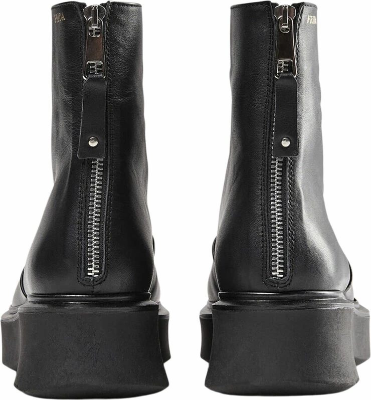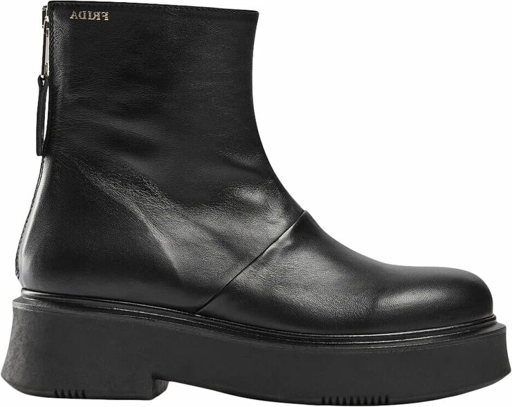 “With Adela you have both the chunky and elegant expression in the same boot, as the outsole has a nice clean plateau. Zip on the backside. -100% leather -100% leather lining -Soft leather insole -Rubber outsole -Round toe -Shaft hight 15 cm. -Heel hight 4,5 cm. -Plateau 2,5 cm. -Made in Spain ”