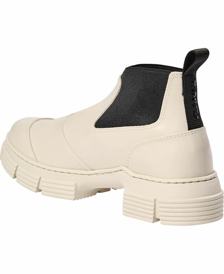 Rubber Crop City Støvler i 50% recycled rubber. Støvlerne har elastiske paneler, tåkappedetaljer, trækfane og et GANNI logo.