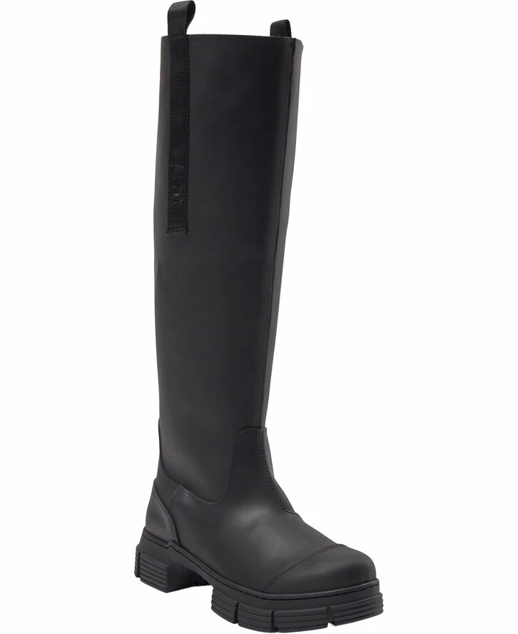 Lange støvler i genanvendt gummi. Brug dem sammen med en strik med hætte og en kort nederdel. Disse støvler er lavet af en blanding af genanvendt gummi og er ikke vandtætte