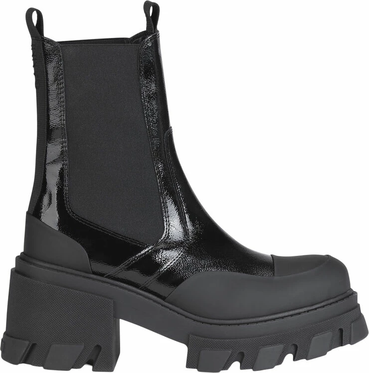 Støvler i 100% calf leather med elastikpaneler, tåkappe detalje, trækfaner, chunky ribbede såler og GANNI logo.