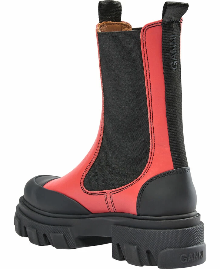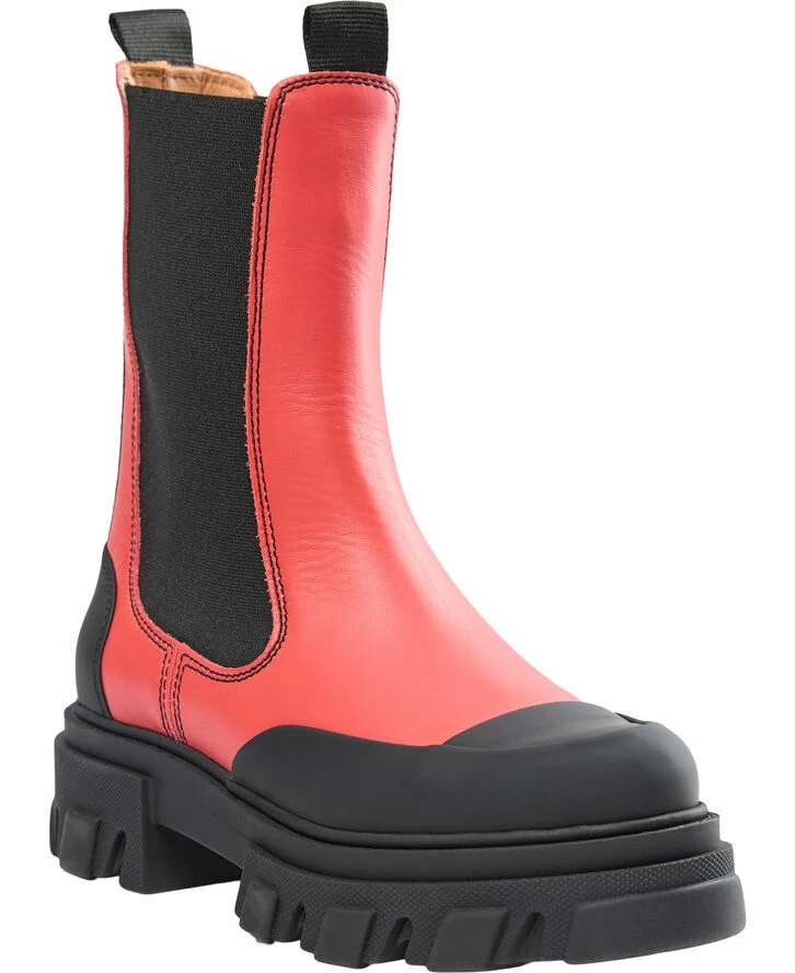 Klassiske, halvlange Chelsea-ankelstøvler i læder med elastiske paneler i siderne, kontrasterende snudedetaljer, trækfaner for og bag samt chunky, ribbede såler. Perfekte til alle slags outfit.