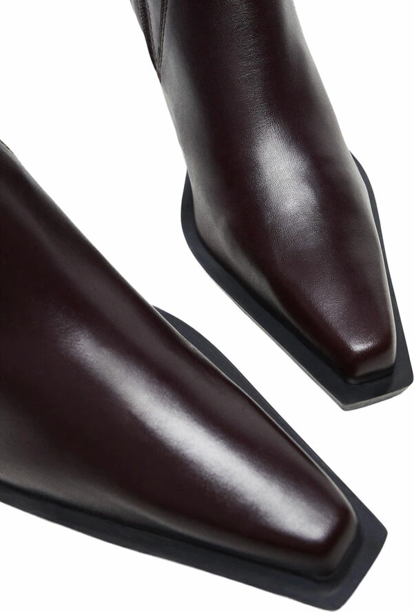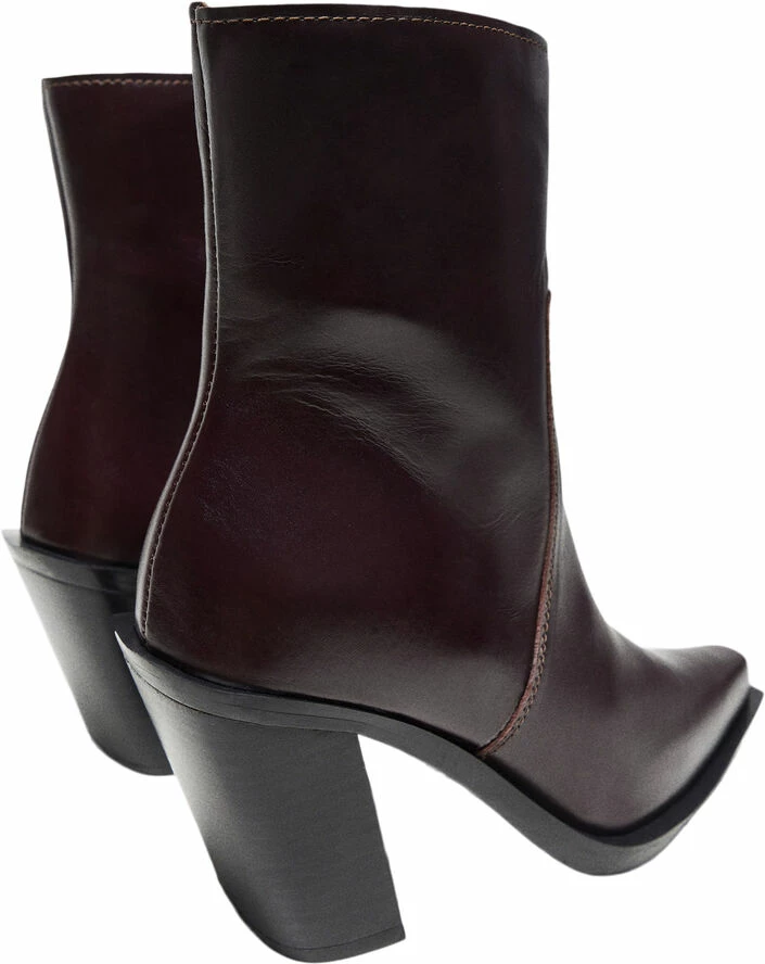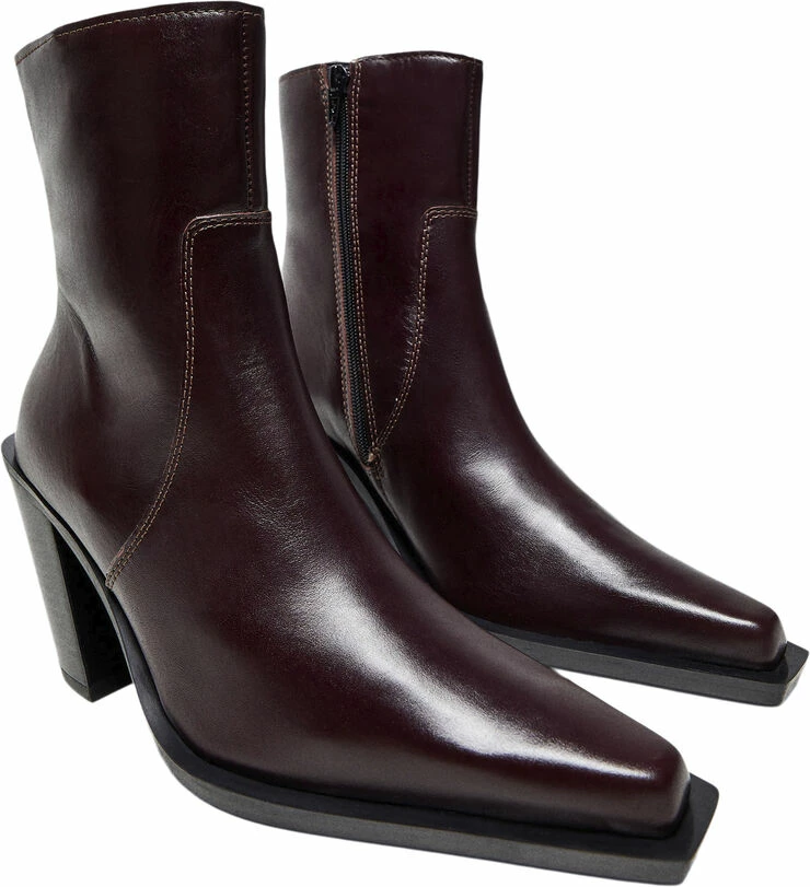 Selection Collection, 100% bovine leather, pointed, short leg, side zip fastening, block heel.