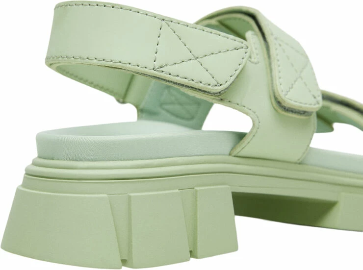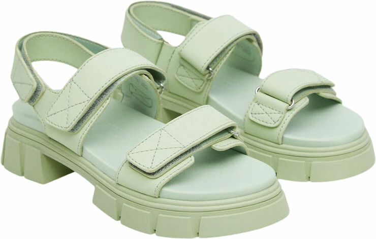 Straps design, platform, rounded toe, strap fastening with Velcro.