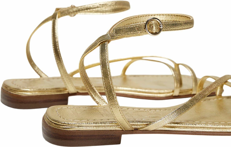Straps design, flat, square toed, ankle bracelet, buckle.