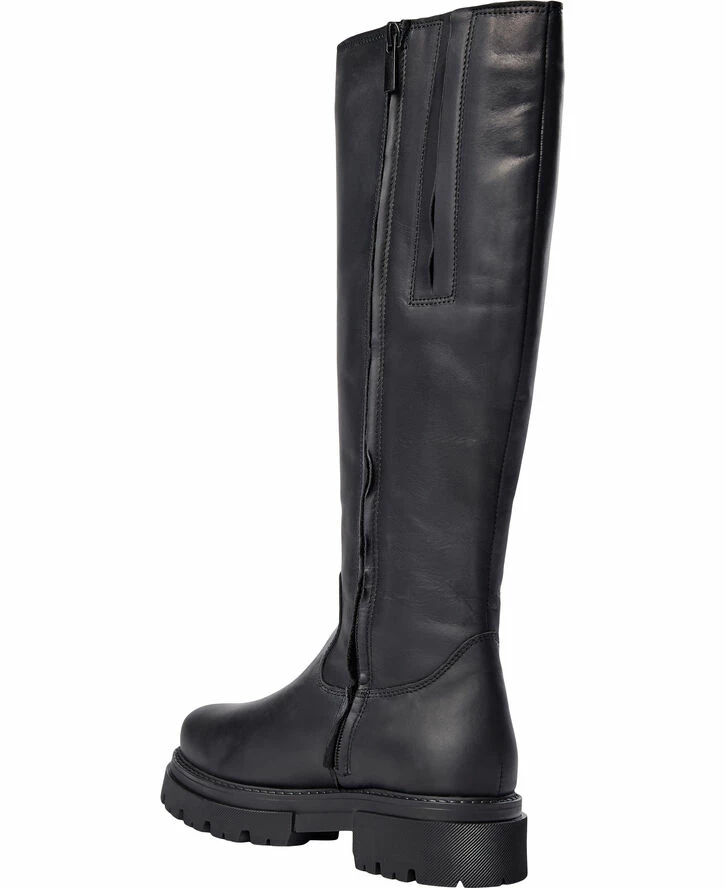 Cool combat-inspired boot in calfskin with round toe, on a chunky but comfortable rubber sole. Long shaft with zipper on the inside. Heel- 3 cm Material- calfskin Look- cool, raw