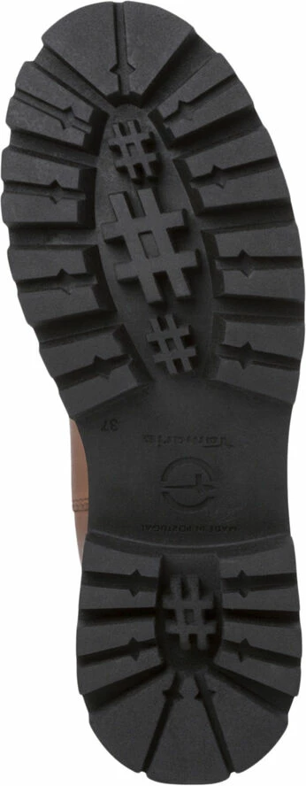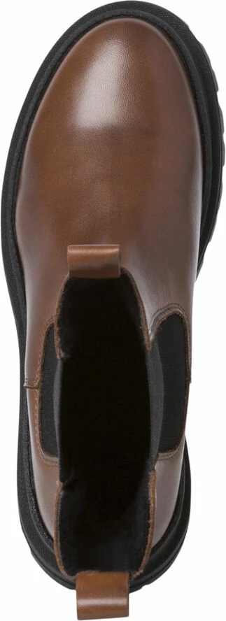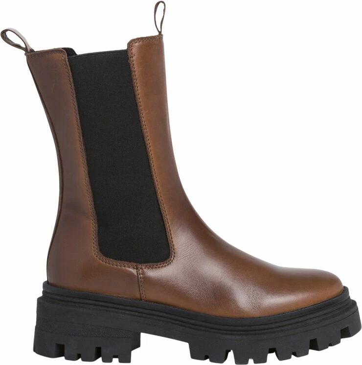 Støvle fra Tamaris i en flot læderkvalitet. Støvlen er enkel i modellen med elastik i siderne, en bred hælstrop samt en rund snude. Derudover har støvlen en grov sål, der giver den et chunky udtryk.