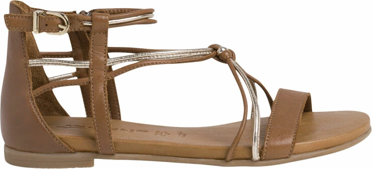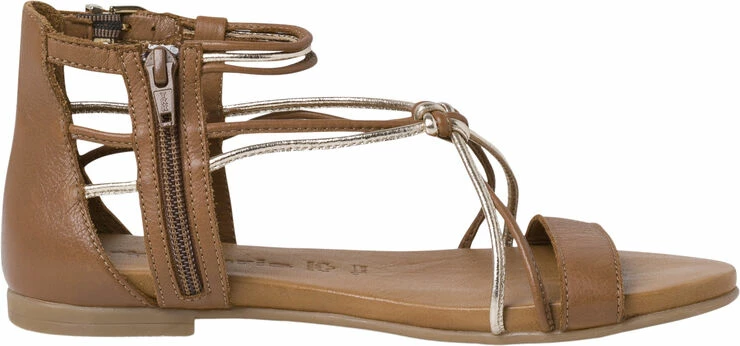 Flad remsandal med fast hælkappe. I blødt skind og med en indvendig lynlås
