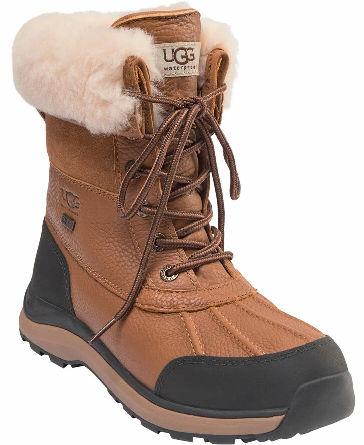 Forede støvler fra UGG, der består af en kombination af flere forskellige kvaliteter, der tilsammen giver en flot effekt. Derudover har støvlen snørelukning på fronten, en afrundet snude, en bred hælstrop samt en præget sål. Et par skønne, vandtætte støvler, der kan holde dig varm i det kolde vintervejr.