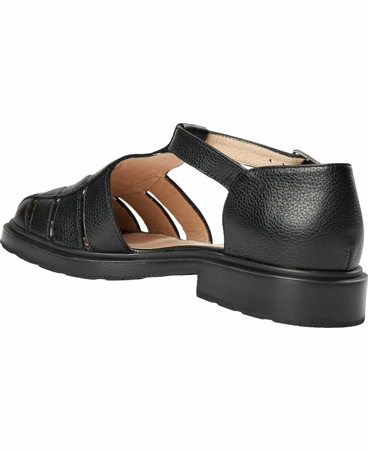 Sandal fra Wonders i en præget læderkvalitet. Sandalen er enkel i modellen med en justerbar rem med spænde, en afrundet snude samt remme over forfoden, der giver sandalen et casual udtryk. Et par skønne sandaler i en lækker kvalitet.